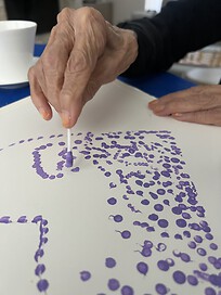 Long ago, during my 29 years as an art teacher, I had a fun time with some Alzheimer's students. One day, four of them joined me for a painting session. Excited to get creative, I handed out paintbrushes, but one of them said, "I can't." The others quickly agreed, saying, "We can't." Not giving up, I gave them q-tips and asked, "Can you make a dot?" They all happily said "Yes!"